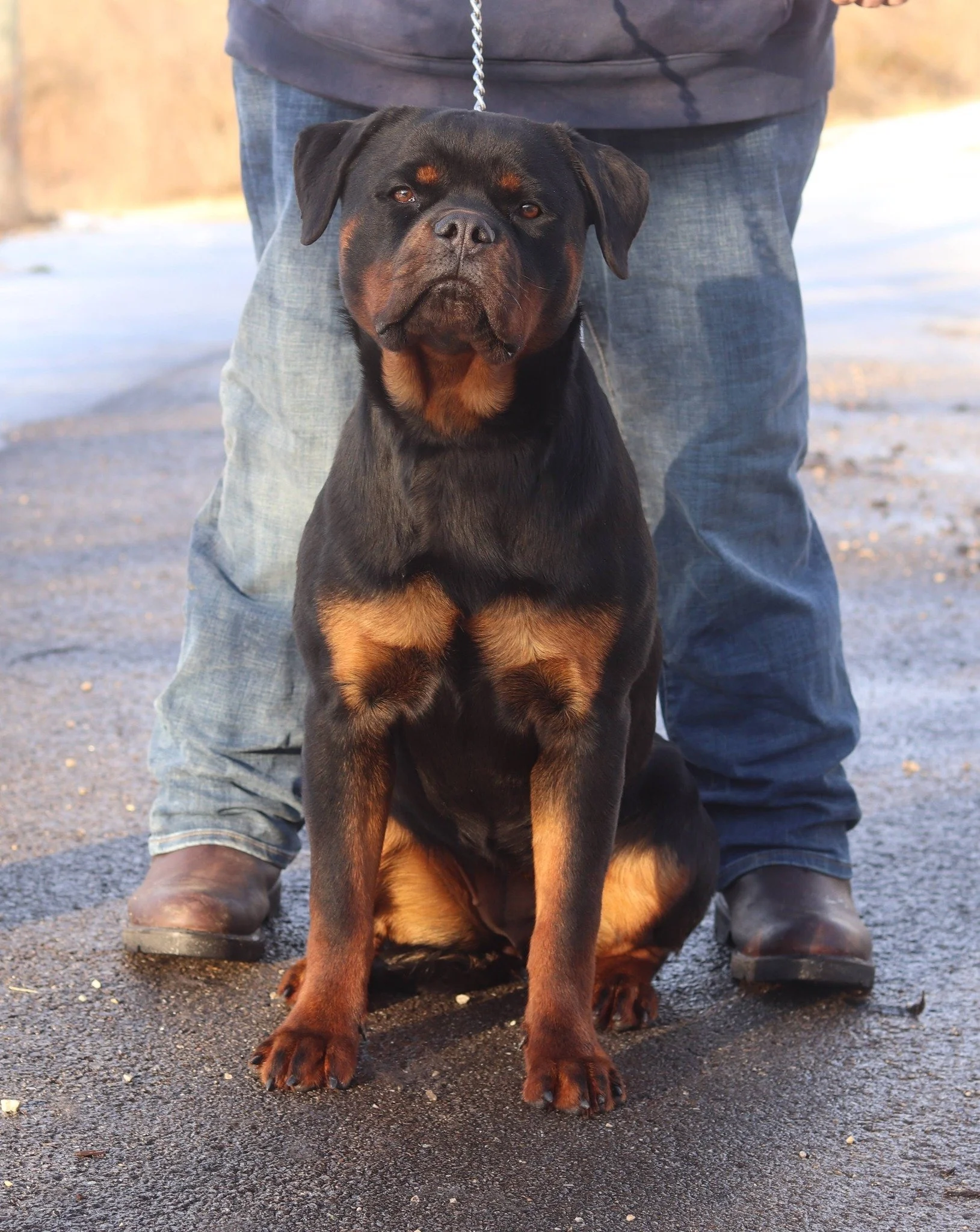 Zoey is a female with a top caliber build. She is large and strong all over, height, length, width. She has a more masculine build with a huge block head. Very loving with her family. She does have more drive and loves to fetch all day. Big thanks to Autumn Woods kennel for the opportunity to add her to our line up of gorgeous females. Hips, elbows, & JLPP clear.